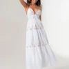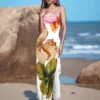 Women’s Summer Long Cami Dress Sleeveless Open Back Lace Patchwork Beach Dress